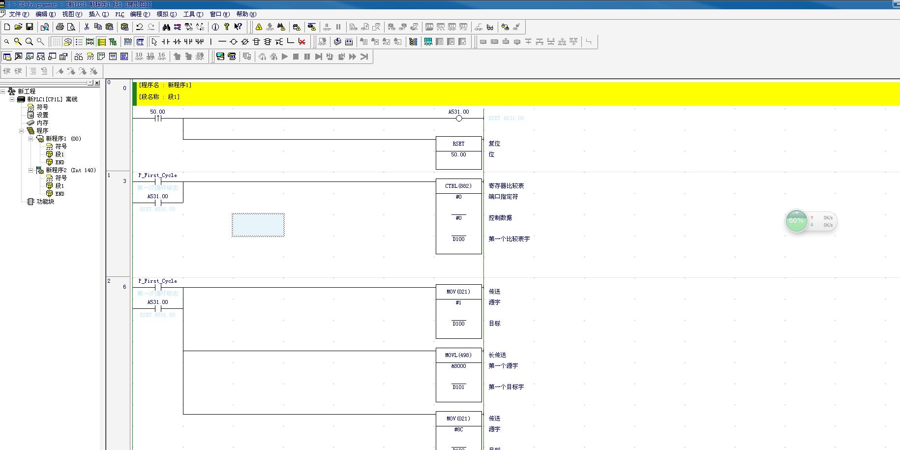 歐姆龍cp1l采用高速計(jì)數(shù)比較登陸進(jìn)行高速計(jì)數(shù)器0軟件復(fù)位 設(shè)置8000個(gè)脈沖 比較一致后啟動(dòng)中斷程序使計(jì)數(shù)復(fù)位為0  然后又重新計(jì)數(shù)到8000后又復(fù)位計(jì)數(shù)器0 這個(gè)程序正確嗎   我寫入PLC后發(fā)現(xiàn)第一次能復(fù)位到0 接著轉(zhuǎn)動(dòng)編碼器到8000就不能復(fù)位了 發(fā)現(xiàn)A531.00 處于置位狀態(tài) 應(yīng)該采用什么方法使A531.00復(fù)位呢