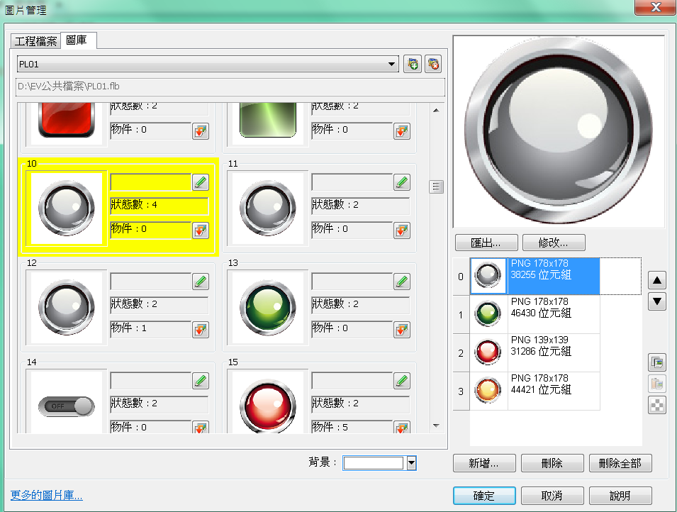 引用引用第1樓gione于2017-09-02 10:27發(fā)表的 :元件裡不是有個(gè)多狀態(tài)指示燈狀態(tài)數(shù)可設(shè)到256個(gè)圖片就要自己到圖庫(kù)裡修改對(duì)應(yīng)狀態(tài)的圖片
