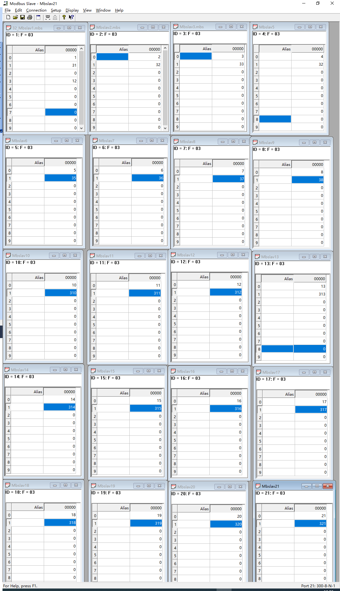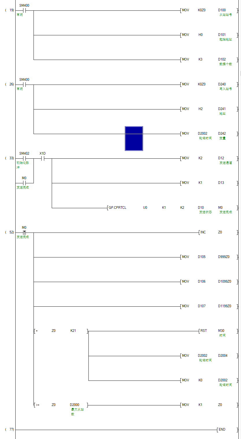 1、對(duì)1-21號(hào)從站地址0,1,2地址讀取