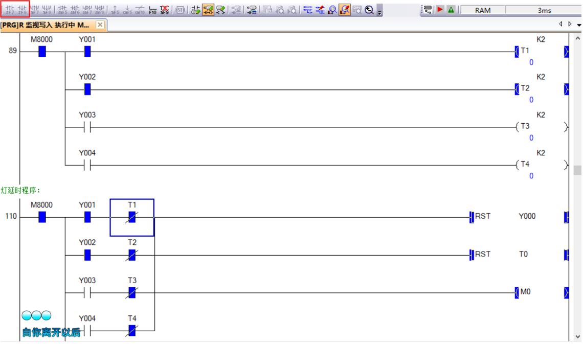 引用引用第4樓sjm213于2022-03-02 19:24發(fā)表的 :如果就這幾行程序,T1/T2通電之后它的常閉點(diǎn)就應(yīng)該斷開。但從監(jiān)控狀態(tài)看,定時(shí)器并未計(jì)時(shí),它的時(shí)間當(dāng)前值是0,所以其線圈實(shí)際狀態(tài)并未接通,常閉觸點(diǎn)通路是對(duì)的。