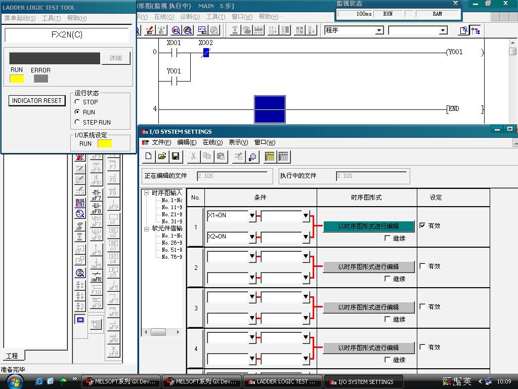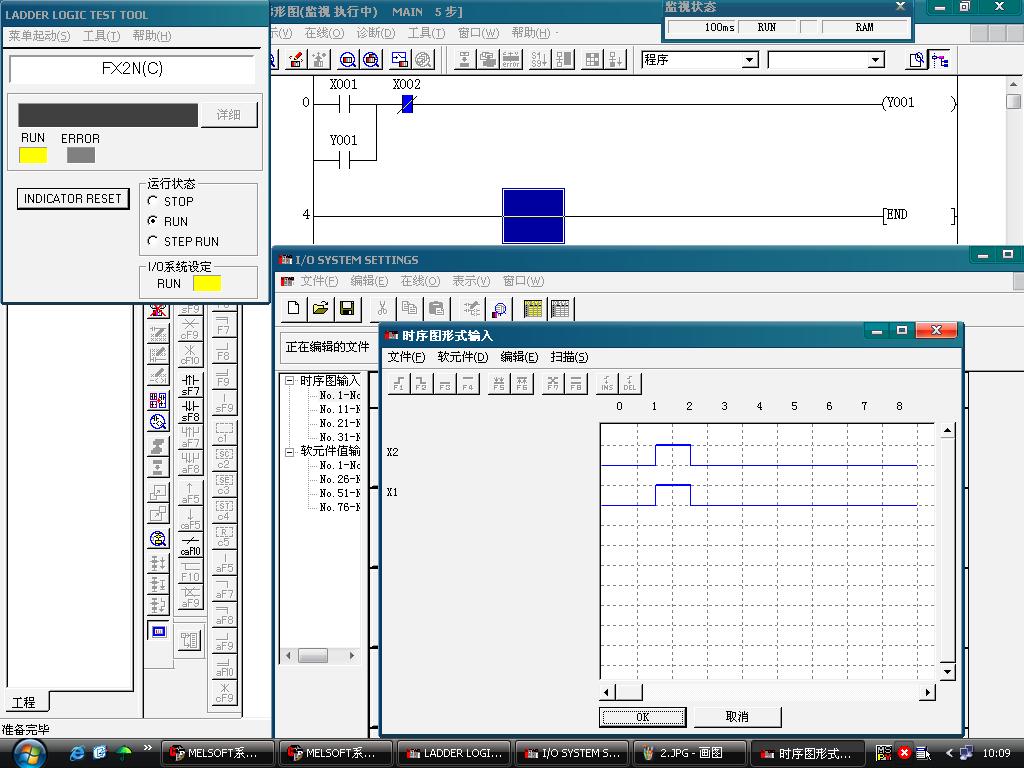 在三菱PLC仿真程序GX  Simulator 6中,梯形圖中常開、常閉觸點串聯(lián),在用時序圖進行I/O設(shè)定時,如何進行?我采用了此方法,請大家指教。