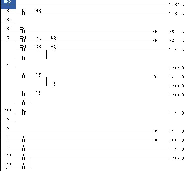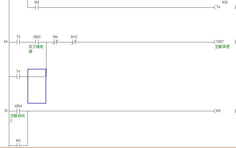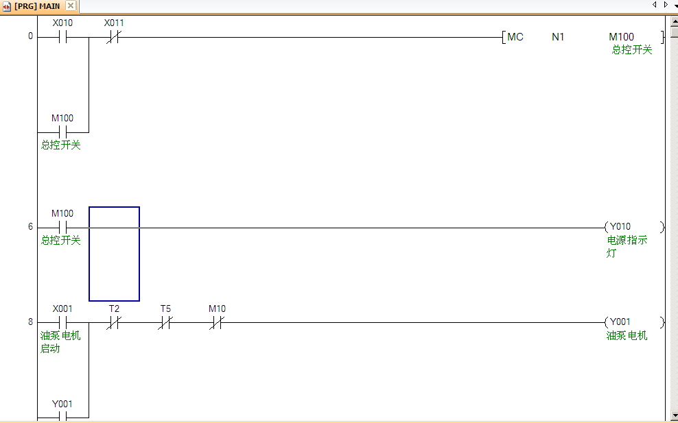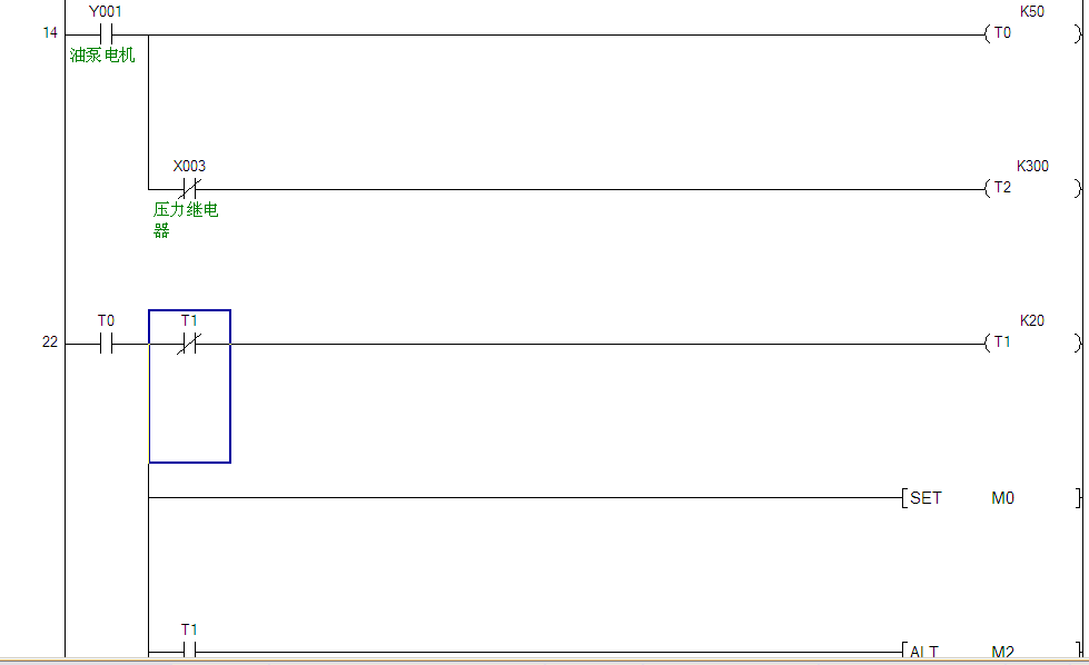 2、起動油泵電動機5秒鐘后,如機床液壓系統(tǒng)壓力繼電器SP動作(壓力達到標準,用SQ模擬),用閃爍的綠色指示燈(閃爍頻率為2HZ)提示操作者,可起動主軸電動機;如壓力繼電器SP不動作,30秒后油泵電動機停車鎖死,并用紅燈閃爍(閃爍頻率為1HZ)、蜂鳴器鳴叫指示液壓系統(tǒng)需維修。