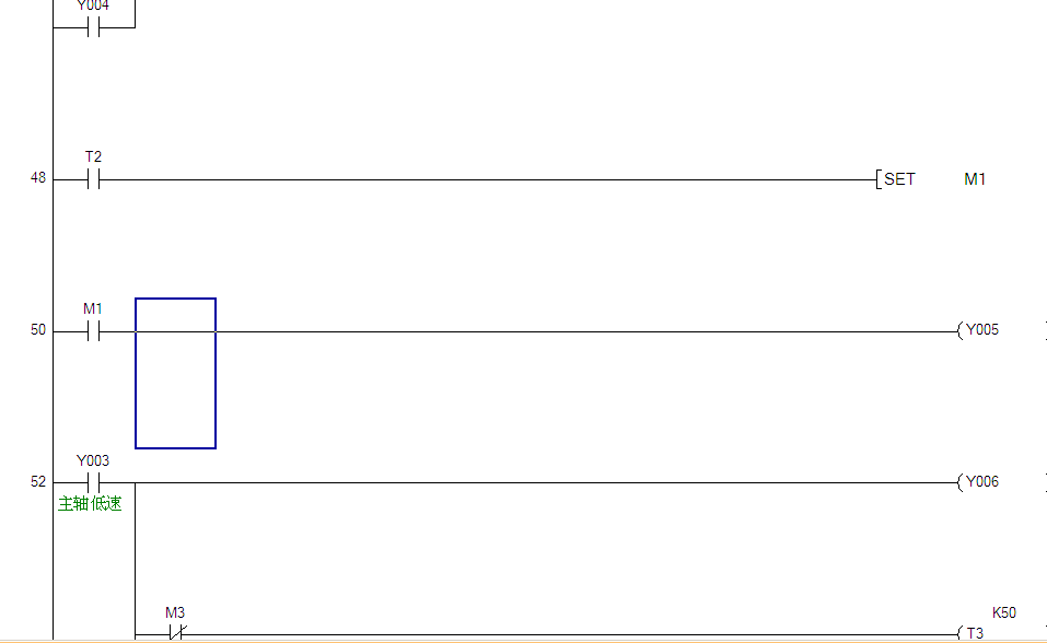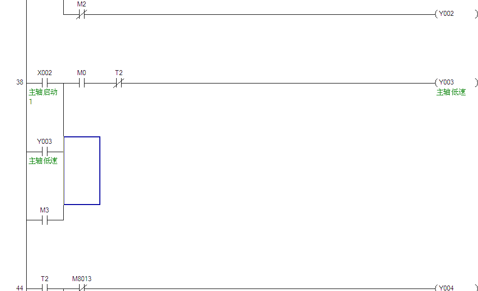 3、主軸電動機采用雙速。有兩種工作方式。分別用兩個啟動按鈕,主軸啟動后用綠色指示燈指示。一個按鈕啟動是手動方式,即從低速轉(zhuǎn)到高速需再次按下啟動按鈕,但需要在低速運行5S之后按下啟動按鈕才能啟動高速。按下另一個啟動按鈕,低速運行3S之后自動轉(zhuǎn)到高速。
