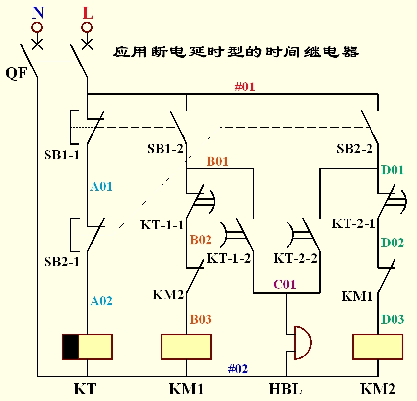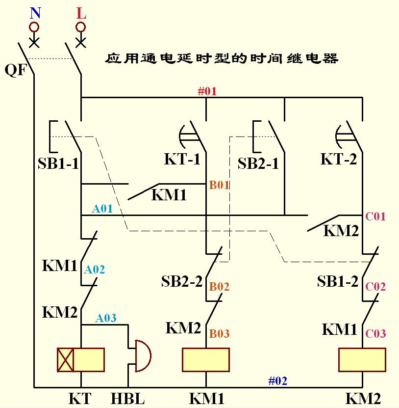 根據(jù)樓主在本“主題帖”中提出的“概略”要求,僅從我個(gè)人所能夠考慮到的幾個(gè)方面,已經(jīng)繪制了9張不同控制方式的繼電邏輯電氣控制系統(tǒng)原理圖。在這里,僅貼出其中兩幅控制電路的原理圖,一份應(yīng)用的是“通電延時(shí)型時(shí)間繼電器”,另一份應(yīng)用的是“斷電延時(shí)型時(shí)間繼電器”,供樓主參考(主電路從略)。錯(cuò)誤之處,請(qǐng)樓主和各位感興趣的朋友多多指正。