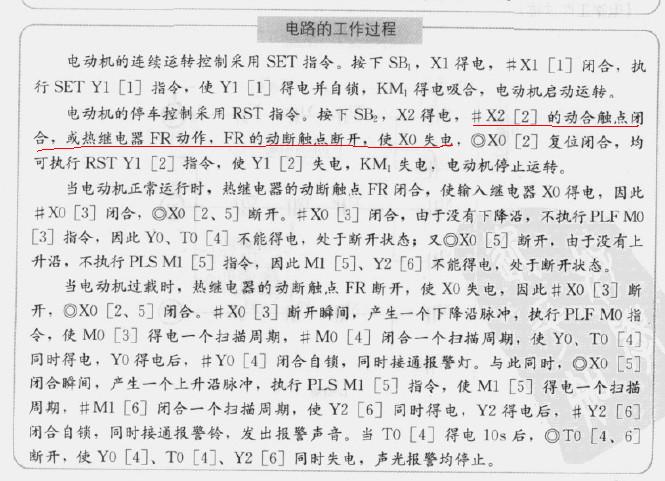 簡單的來講,XO你也可以看成如繼電器般的有相互對立的常開常閉,通電時常開觸點通電,斷電時常閉觸點通電。按照你的電路,正常情況下FR的常閉控制觸點(熱繼電器控制的常閉端)是通電的,也就是X0是有輸入的,X0通電,這時候的狀態(tài)就是X0的常開閉合,常閉斷開,電路正常工作,但電機過載時FR動作,F(xiàn)R的常閉觸點斷開,X0沒有輸入,也就是X0的常開斷開,常閉接通,執(zhí)行RST復位指令令Y1復位,Y1控制的KM就斷電。